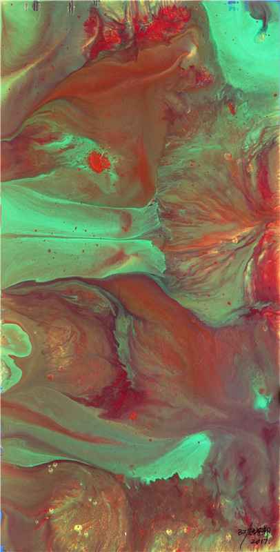BZ艺术原创玻璃11号作品,BZ materialet,75cm x 38cm,2.56Kvm,BZ utviklet uavhengig formuleringer av pigment og løsningsmiddel,Energy Secret Water,Fungerer energinivå 5.5,Zhang Fangcun,2017Åpningsår