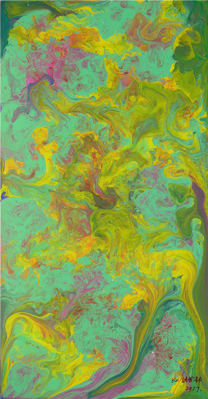 BZ original art works Glass No. 27,BZ material,75cm×38cm,2.56Sq.ft,BZ independent research and development of pigment and solvent formulations,Energy water recipe,Works energy level 5.5,Zhang Fangcun,2015In creation