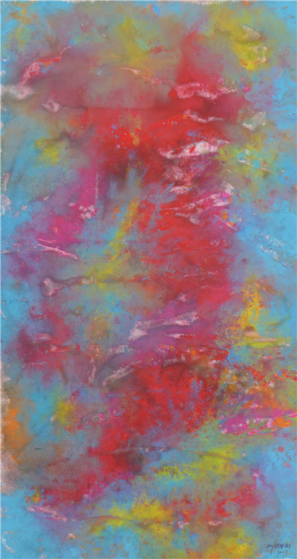 BZ艺术原创纸本182号作品,BZ材料,180cm×97cm,15.71平尺,BZ独立研发颜料和溶剂配方,能量秘方水,作品能量级别5.5级,张芳邨,2017年创作